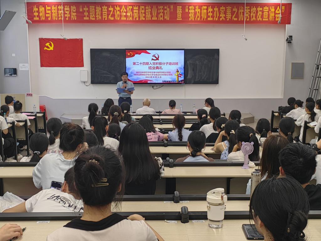 6月6日下午,m88明昇与化学与食品科学学院于我校东校区格物楼物理阶梯教室举办第二十四期入党积极分子结业典礼,本次典礼由m88明昇党委副书记兼副院长蒋德旗主持,m88明昇党委专职组织员赖兴珲、生物科学系学生第二党支部书记程思忍,化学与食品科学学院党委副书记刘里琳、教工党支部组织委员王瑞娟以及第二十四期全体入党积极分子参加。