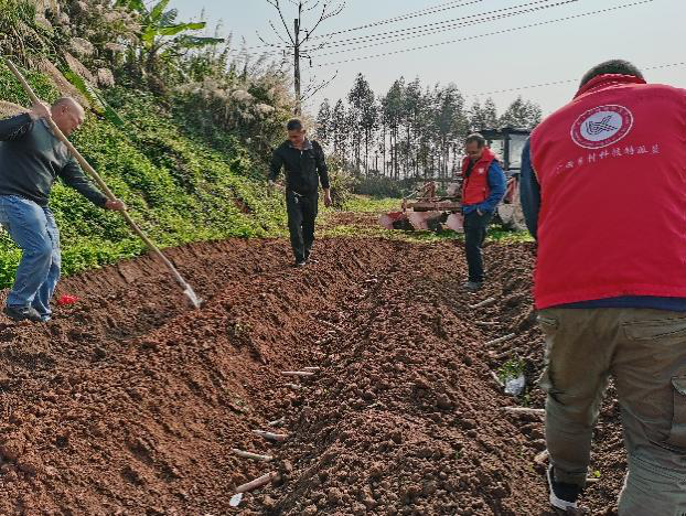 近日,我校财务处处长陈旭健和凌辉博士、孙跃春博士、刘秦博士、张玉博士组成的乡村科技特派员服务团队前往陆川县马坡镇东西村石头塘种养农民专业合作社甘蔗品种试种基地指导甘蔗新品种的种植,该合作社是广西高校亚热带生物资源保护与利用重点实验室乡村科技特派员服务团队挂牌服务示范点。本次种植的甘蔗品种是由广西大学、福建农林大学、云南农业科学院甘蔗研究所、崇左市农业科学研究所提供的中蔗福农48号、云蔗08-1609,属于高产高糖高抗新品种,亩产平均达到10吨以上。特派员服务团队通过“农资化肥支持、取土样测土配方、引进新品种”的服务模式,像“春雨”润物无声一样,滋土催芽生根,为提高农民种植收益化注入科技力量。合作社负责人向科技特派员表达了深深的感激之情,新品种的种植让他对来年的丰收充满了信心。