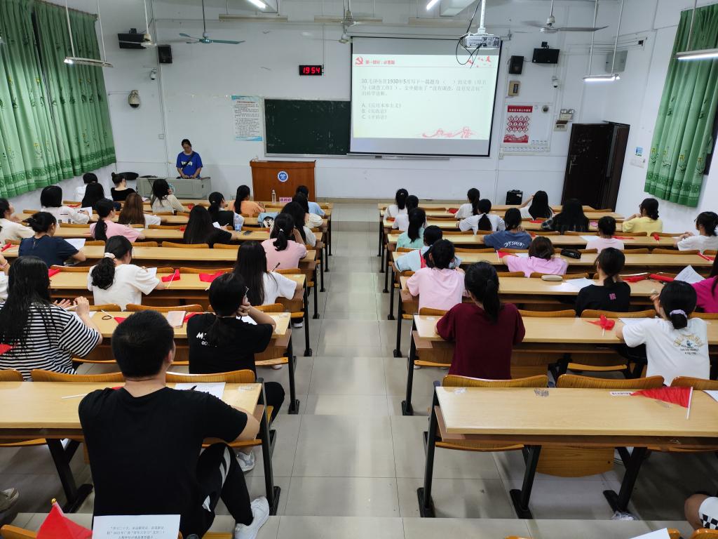 5月16日下午,m88明昇于我校东校区博学楼2–102教室举办“学习二十大、永远跟党走、奋进新征程”——2023年广西“青年大学习”党的二十大精神知识挑战赛,本次比赛由m88明昇文工团主持队成员何漳、黎茜主持。