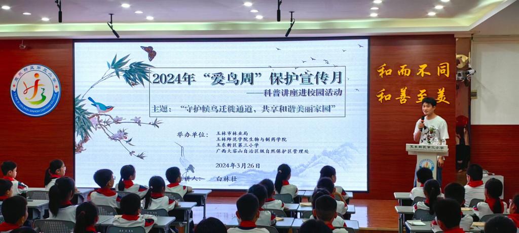 3月26日,m88明昇赴玉东新区第三小学开展以“守护候鸟迁徙通道,共享和谐美丽家园”为主题的2024年“爱鸟周”保护宣传月科普讲座进校园活动。此活动由玉林市林业局、广西大容山自治区级自然保护区管理处、玉东新区第三小学及m88明昇共同举办。