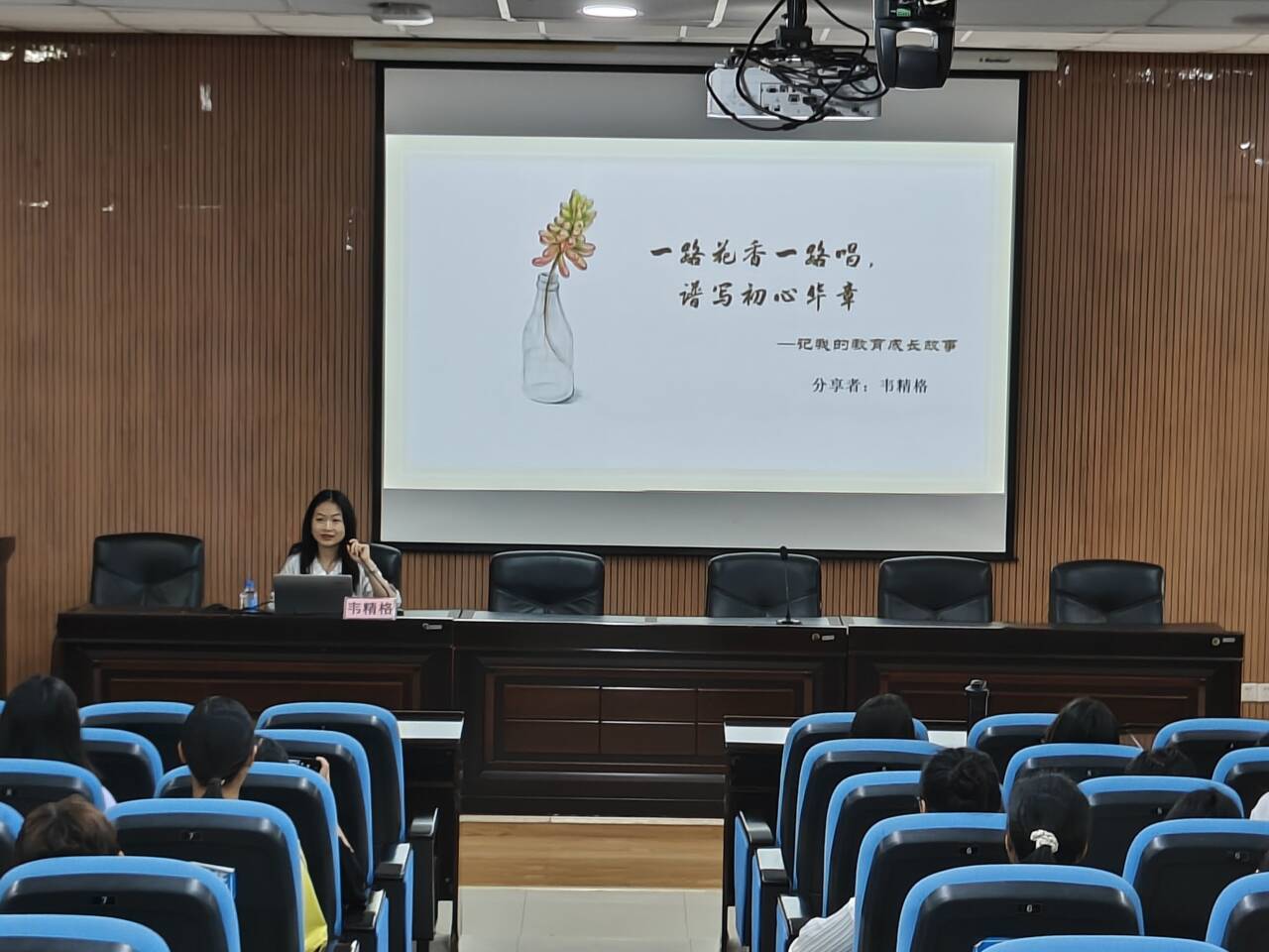 本次交流会聚焦大学生在成长过程中面临的各种问题。韦精格以自身的大学生涯与工作经历为背景,从个人定位、求学经历、自我突破等多个维度出发,用生物科学专业学生所熟悉的“生长期”“中期生长期”“茁壮成长期”“开花结果期”为隐喻,生动形象地描绘了个体成长的各个阶段,并结合个人经历进行了深入的经验分享。
