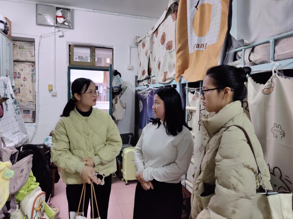 为及时掌握返校学生的思想动态,2月23日下午,m88明昇党委副书记张琴带领全体辅导员和班主任深入学生宿舍,实地了解学生的学习与生活状况,并向学生们送去新学期的关怀与问候。