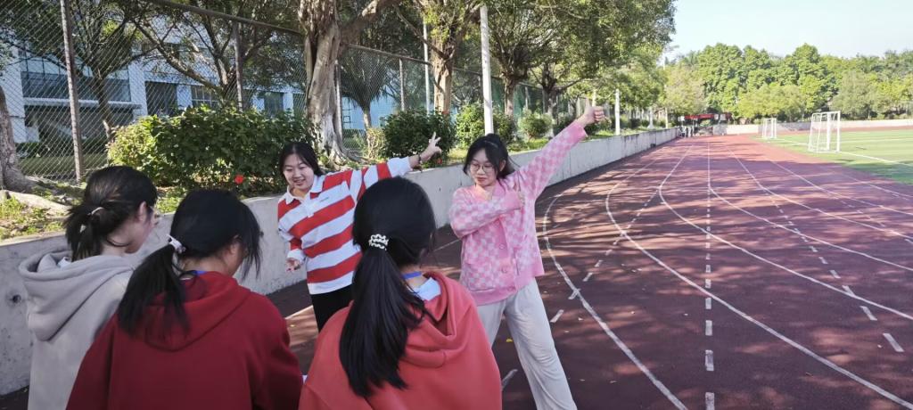 比赛开始,参与选手纷纷加速跑向任务点,从任务点处抽取照片,并摆出与照片中相同姿势,迅速准确地完成所抽取的任务获得贴纸后,迅速跑向下一任务点,争分夺秒完成任务。三个任务点贴纸收集完毕后参赛选手迅速跑向终点,将贴纸交给终点裁判,完成本次比赛。赛场外,加油呐喊声不断,运动场上充满了同学们的欢声笑语。
