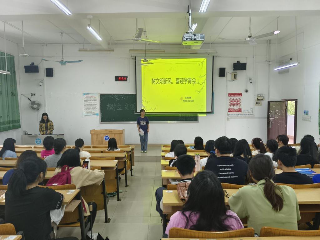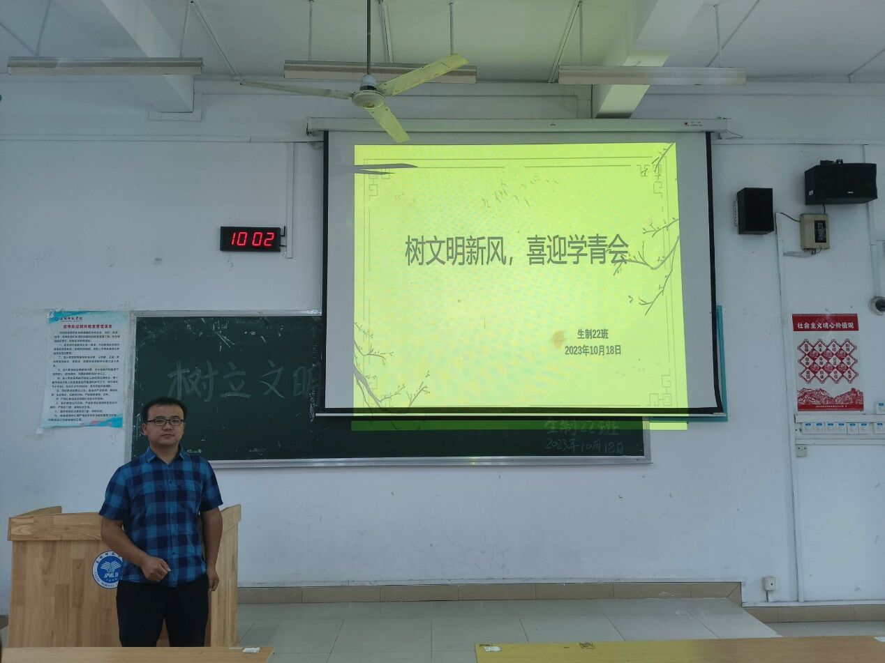 园艺2022班余浩铭播放了学青会相关视频,并围绕守法、尊师、勤学、节俭、诚信、礼仪等主题,组织同学们开展“文明修身,从我做起”大讨论,进一步教育引导学生将基础文明规范内化为自觉的行为准则,不断强化自我教育、自我管理、自我服务意识,以良好风貌主动参与、服务学青会,以展现新时代大学生的良好形象。