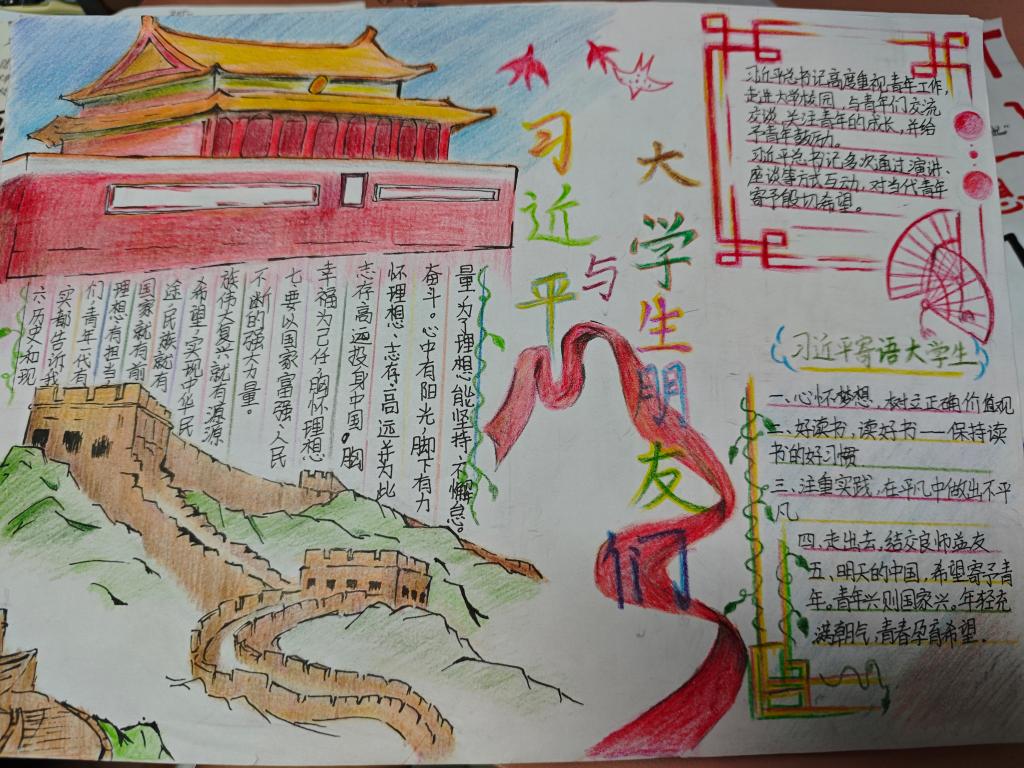 本次活动主要包括“习近平与大学生朋友们”手抄报比赛和“习近平与大学生朋友们”征文比赛两大板块。在活动筹备阶段,团委学生会组织部成员们积极投入到活动的拟定、人员分配以及规则制定等工作中,确保活动方案的科学性和可行性。活动方案明确要求征文作品需为原创,主题鲜明,内容真实可信,具有较强的思想性、启迪性和可读性;手抄报作品则需紧扣主题,内容积极向上,充分展现青年学子的风采与担当。