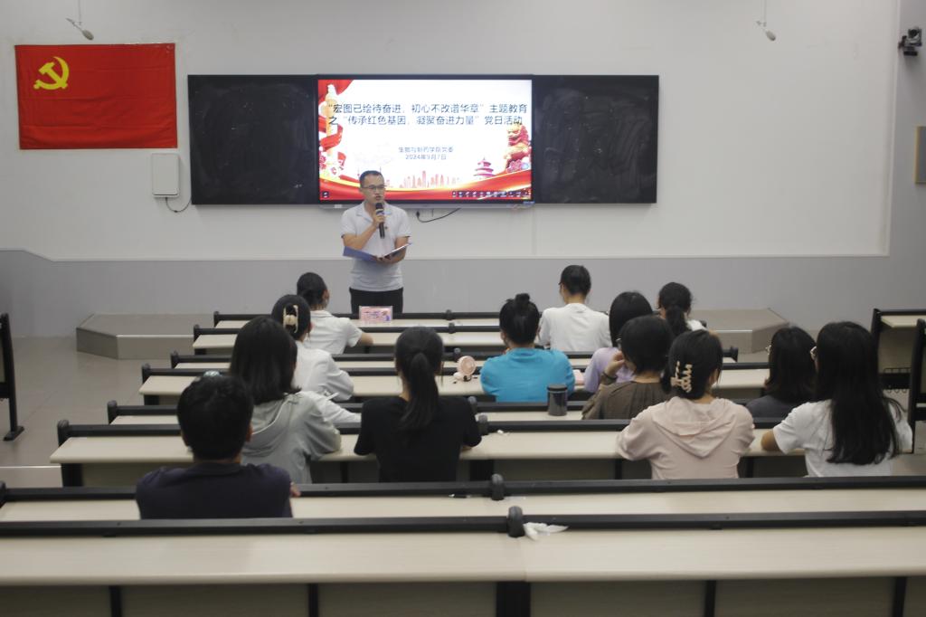 9月7日下午,m88明昇于我校东校区格物楼物理阶梯教室开展“宏图已绘待奋进,初心不改谱华章”主题教育之“传承红色基因,凝聚奋进力量”启动仪式。m88明昇生物科学系学生第一党支部书记方振名出席,全体学生党员参加。
